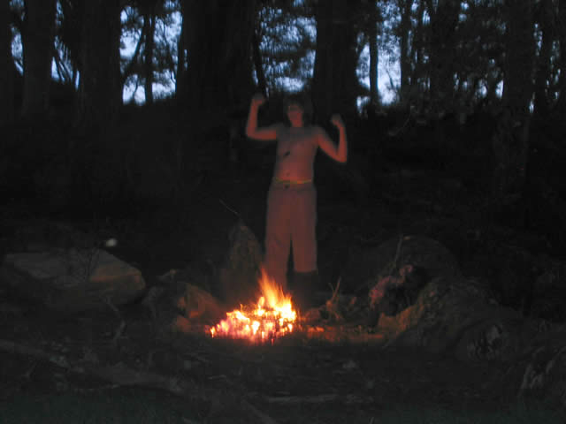 It was a bit windy in the evening but reasonably dry so after dessert we had a camp fire and toasted a few marshmellows and jet planes. The smoke was a bit of a problem, though, and the wind kept changing direction and blowing smoke in our eyes, so we retired to bed earlier than may have been expected and read roughly the first half of The Man-eaters of Tsavo.