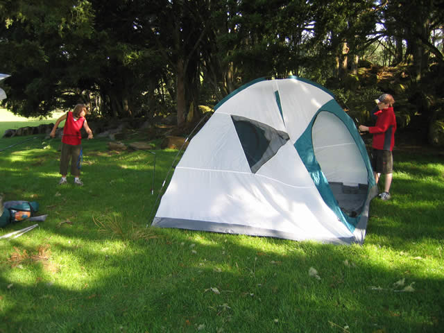 After breakfast we went into Waipu, charging the inverter on the way, and bought detergent, tomato sauce, etc, from the general store, then returned back to our camp site for lunch. While turning the car around to back it into our camp I got the car stuck in thick mud. I'd managed to pick the boggiest part of the field to turn around in. I unloaded the boys, the chilly bin, and a whole lot of water, making the car perhaps 120kg lighter, then tried again with a plank that Alexander had found. Driving out wasn't a problem.